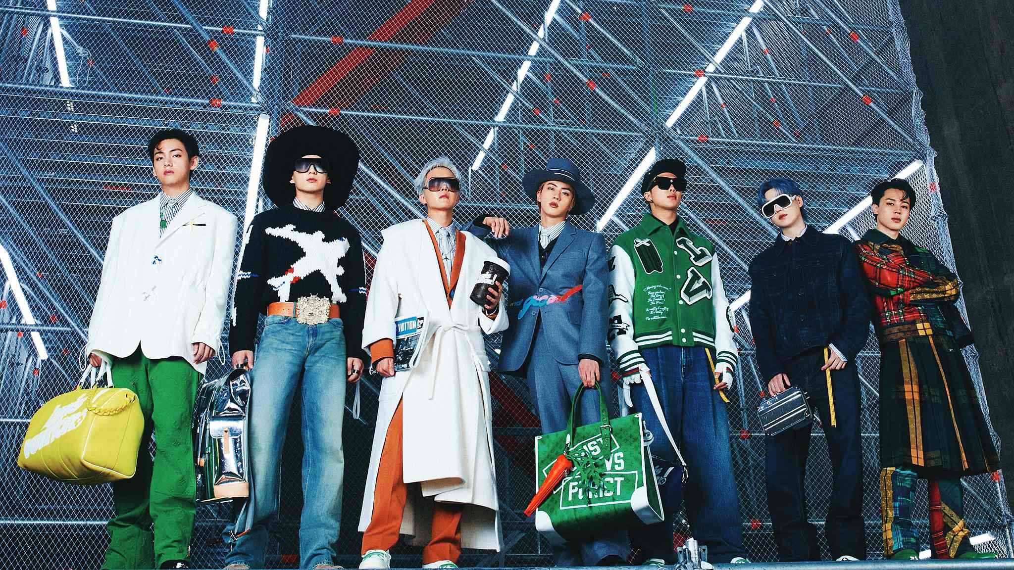 With a large and diverse fan base, the group plays an impactful role in redefining masculinity. “We are living in a time where labels that we call ‘masculine’ or ‘manly’ are vanishing,” BTS leader RM said in an interview. The members embrace the idea of wearing gender-neutral clothing or clothes that are more feminine, which is aligned with Louis Vuitton’s goal to reestablish fashion in contemporary culture.
