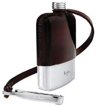 Drink, anyone? Hip flasks may be as old-fashioned as pocket watches. But when fashioned by Berluti, they become a work of art you can carry. This whiskey flask is cast in silver plate and comes in a handcrafted sheath of dark amber Mogano Venezia leather.